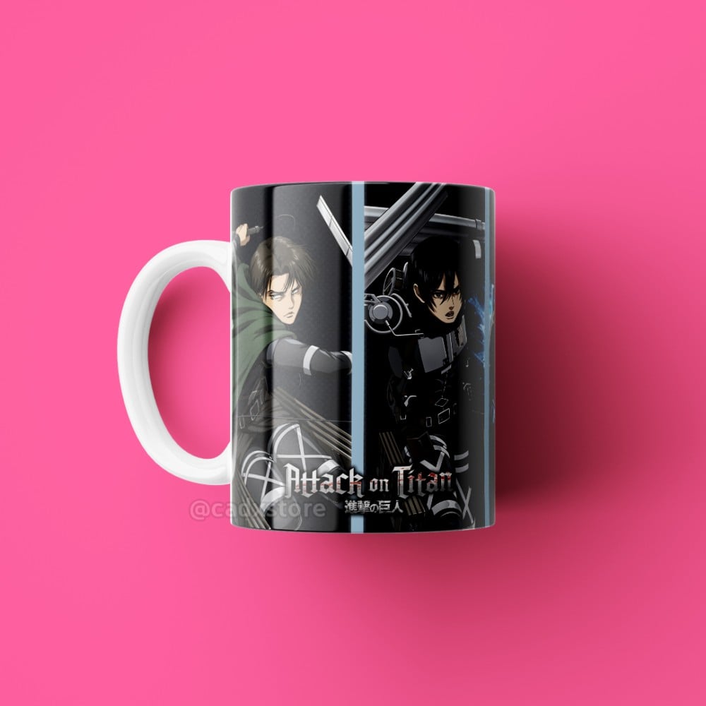 كوب سيراميك بطبعات من مسلسل الانمي الشهير هجوم العالقة